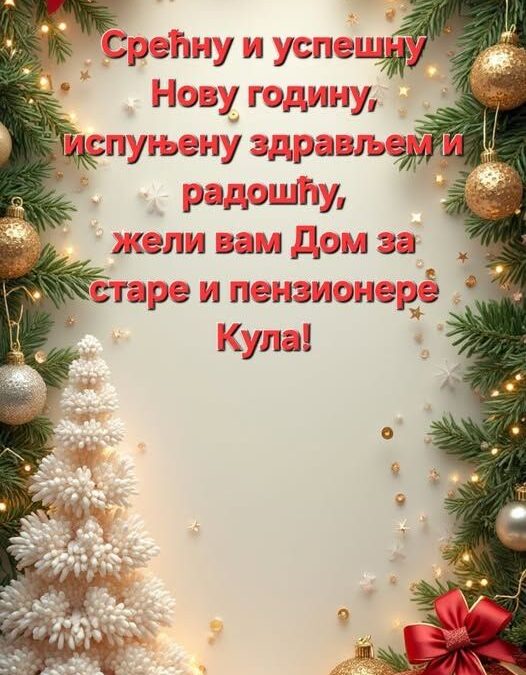 Новогодишња томбола31. децембар 2025. 31. децембар 2025. Категорије Вести Ознаке Срећну и успешну Нову годину, испуњену здрављем и радошћу, жели вам Дом за старе и пензионере Кула! Подели0 Urednik Повезани текстови31. децембар 2025.Новогодишња томболаОпширније31. децембар 2025.У духу заједништва и празничне радостиОпширније24. децембар 2025.Божићна честиткаОпширније